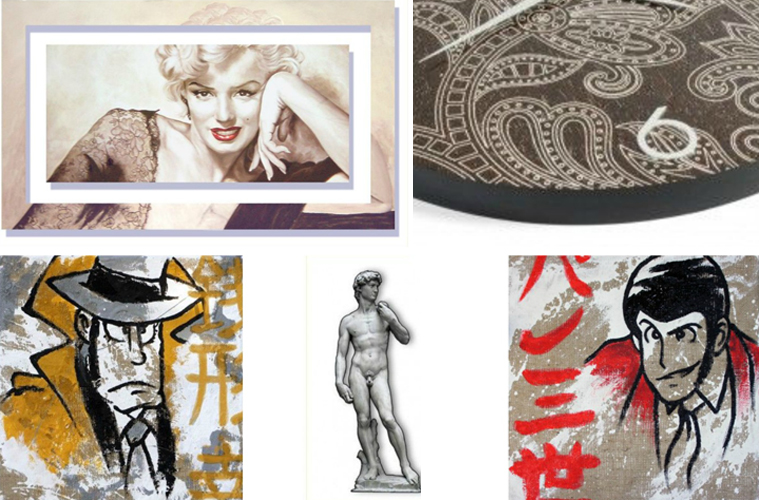 Sul sito trovi numerosi quadri di ispirazione moderna, quadri dipinti a mano su tela, su juta grezza o su legno, con cornice dipinta. La serie Lupin, Pollon, Lupo Alberto o Lego, ispirata ai cartoni animati e ai giochi dei bambini. E i quadri sagomati. Insomma ce n’è per tutti i gusti…