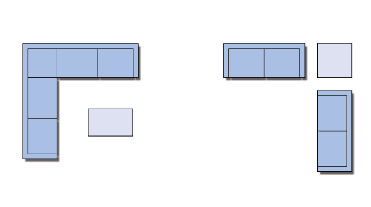 2. I divani posti a 90° consentono di spostare il tavolino dalla posizione centrale a quella laterale.