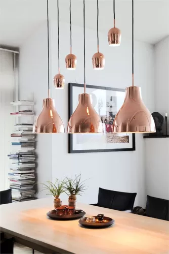 Cercando dei lampadari per un progetto di cui mi sto occupando mi sono subito venute in mente le famosissime lampade in rame di Tom Dixon. Le ho amate fin dalla prima volta che le ho viste e più le guardo e più mi accorgo che sono stupende: amo la loro forma “abbondante” e il loro materiale metallico.