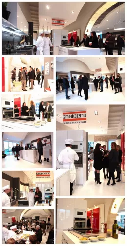 A fare da padrone di casa c’era la famiglia Barone, amichevoli con i clienti e cordiali con gli altri ospiti. Presenti all’evento erano anche Edi Snaidero, presidente dell’omonima azienda e la moglie Sandra. Proprio con lei ho avuto il piacere di intrattenermi, mentre m’illustrava i vari modelli in esposizione, spiegandomi ogni cucina nel singolo dettaglio. Grazie a lei sono riuscita ad apprezzare non solo la qualità, la ricercatezza e la robustezza di queste cucine, ma ho capito anche tutto quello che sta dietro ad una grande azienda di portata mondiale.