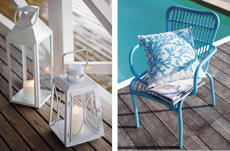 Coincasa propone per l’estate 2015 anche un’ampia scelta di arredo outdoor, con sedie e tavoli, ma anche tovaglie, cuscini impermeabili, lanterne, candele e ceste.