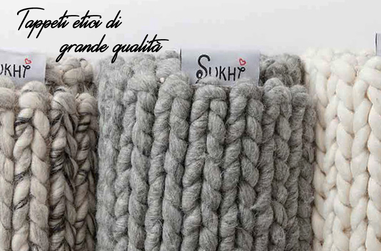 Tra i loro prodotti in vendita si annoverano varie tipologie di tappeti su misura, tutti fatti a mano e di grande qualità, realizzati con prodotti sostenibili. I tappeti Sukhi vengono realizzati in Nepal, India, Marocco e Turchia e da qui nascono i vari modelli da cui poi prendono il nome. Ogni tappeto proprio perchè realizzato in modo artigianale può essere scelto personalizzandone dimensione, forma e colore, in modo da soddisfare tutte le nostre esigenze. Oltre a tutto ogni tappeto viene poi sottoposto a severi controlli prima della spedizione.