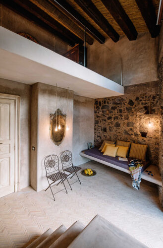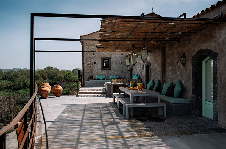 La ristrutturazione ha tenuto conto dell’architettura rurale preesistente integrando il vecchio e il nuovo. Nell’intervento emerge fortemente la matericità della tradizione siciliana etnea: pietra lavica ed intonaci a base di calce idraulica naturale.